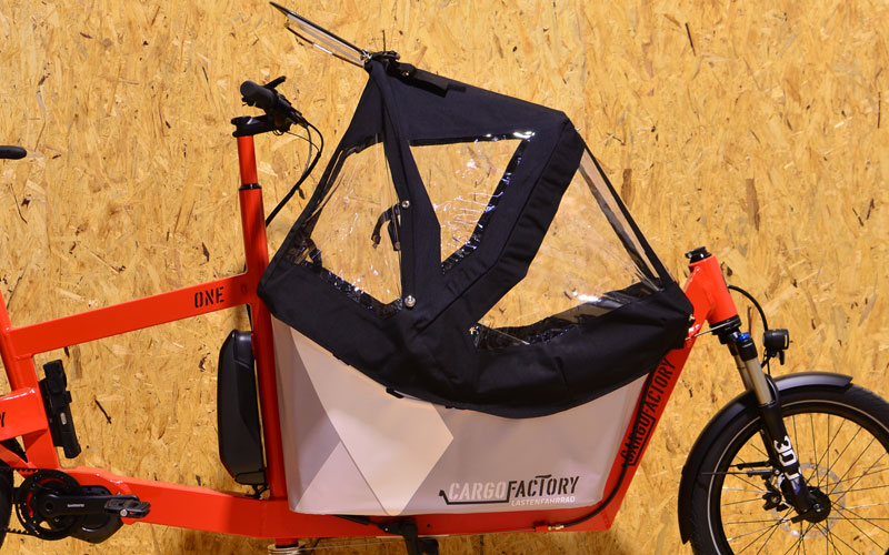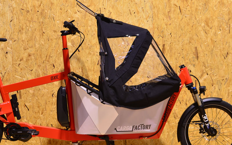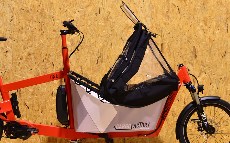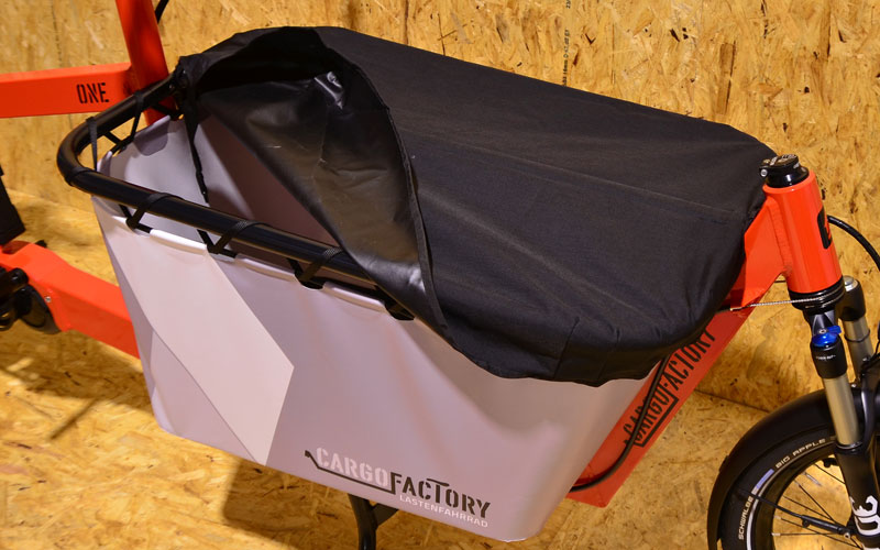 Unser Kinderverdeck kann an jedem Cargofactory ONE mit Kids Frame nachgerüstet werden. Die Montage erfolgt über 3 Spezialschellen. Das Hauptgestänge ist aus CNC gebogenen Aluminiumrohren mit 18mm Durchmesser. Dadurch ist es sehr robust und wir verzichten bewusst auf GFK Stangen die splittern und messerscharf werden können. Die Mechanik fügt sich exakt an den vorderen Teil der Kontur des Kidsframes und beeinträchtigt das Platzangebot in diesem im eingeklappten Zustand. Ein weiteres Feature ist die Arretierung in verschiedenen Öffnungspositionen, was über einhängen eines Knopfes geschieht. 100% Made in Germany.