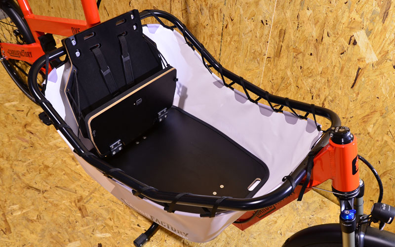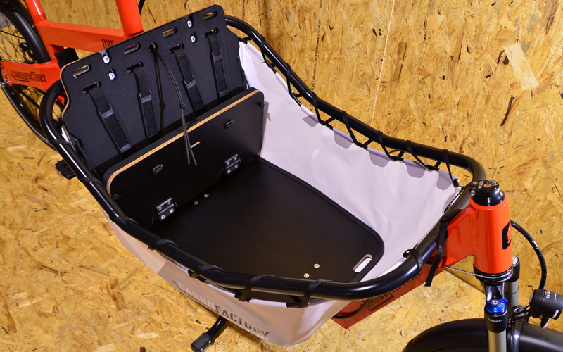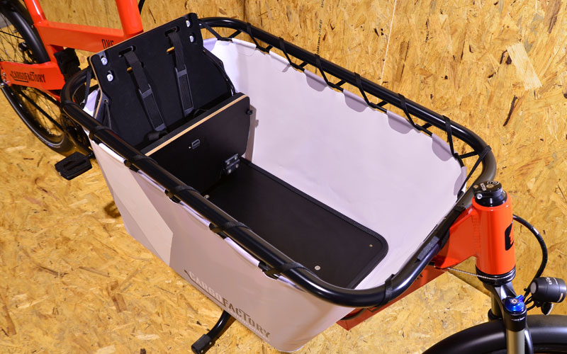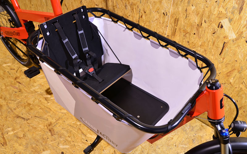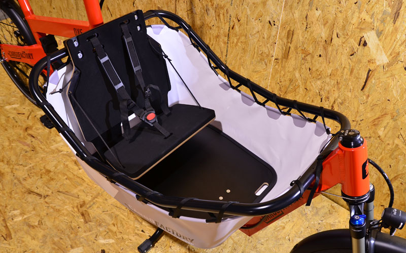 Optional mit klappbarer 1er Sitzbank, in Verbindung mit unserem hochwertigen & funktionalen Y-Gurt, die wohl beste Kindersitzlösung die derzeit im Cargobereich erhältlich ist.
